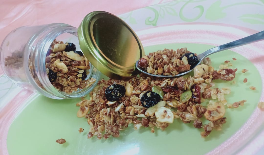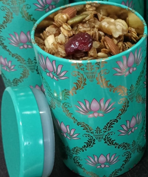 Jaggery granola is a wholesome, crunchy breakfast cereal or snack that is naturally sweetened with jaggery instead of refined sugar. Made from rolled oats, nuts, seeds, and berries, it’s a great source of fibre, plant-based protein, and essential nutrients. This versatile and energising food can be enjoyed with milk, yogurt, or fruit, or as a healthy on-the-go snack.